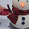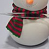 Corte um pedaço e faça pequenos cortes na extremidade do cachecol, para fazer a textura da franja, essa será a extremidade mais larga do cachecol, fixea abaixo do pescoço. Com o restante dobre no formato de V e coloque em torno do pescoço do boneco de neve.