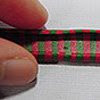 Use a extrusora para fazer pequenos rolinhos e disponha-os lado a lado alternando as cores vermelha e verde. Passe o rolo por cima para achatá-los e corte as pontas para que fiquem alinhadas, esse será o cachecol.